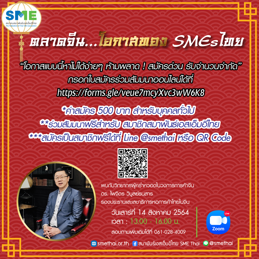 🔹สมาพันธ์เอสเอ็มอีไทย🔹 เปิดสัมมนาเสริมความรู้สู่ตลาดผู้บริโภคจีนผ่านช่องทางออนไลน์ สิงหาคม 3, 2021 📣📣📣 อ่านต่อ >>