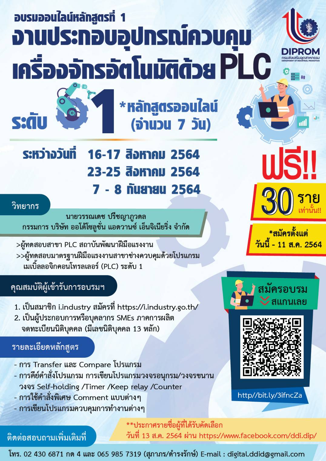 📣กองพัฒนาดิจิทัลอุตสาหกรรม กรมส่งเสริมอุตสาหกรรมเปิดอบรม “งานประกอบอุปกรณ์ควบคุมเครื่องจักรอัตโนมัติด้วย PLC” ระดับที่ 1 ผ่านช่องทางออนไลน์ฟรี กรกฎาคม 30, 2021 📣📣 อ่านต่อ >>