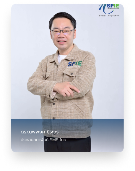 “สมาพันธ์ SME ไทย คือเครือข่ายระดับชาติที่รวบรวมผู้ประกอบการ SME จากทั่วประเทศ เพื่อสร้างความเข้มแข็งและยกระดับศักยภาพของธุรกิจขนาดกลางและขนาดย่อมไทย ผ่านการแบ่งปันความรู้ การสร้างโอกาสทางธุรกิจ และการพัฒนาเครือข่ายความร่วมมือทั้งในและต่างประเทศ”